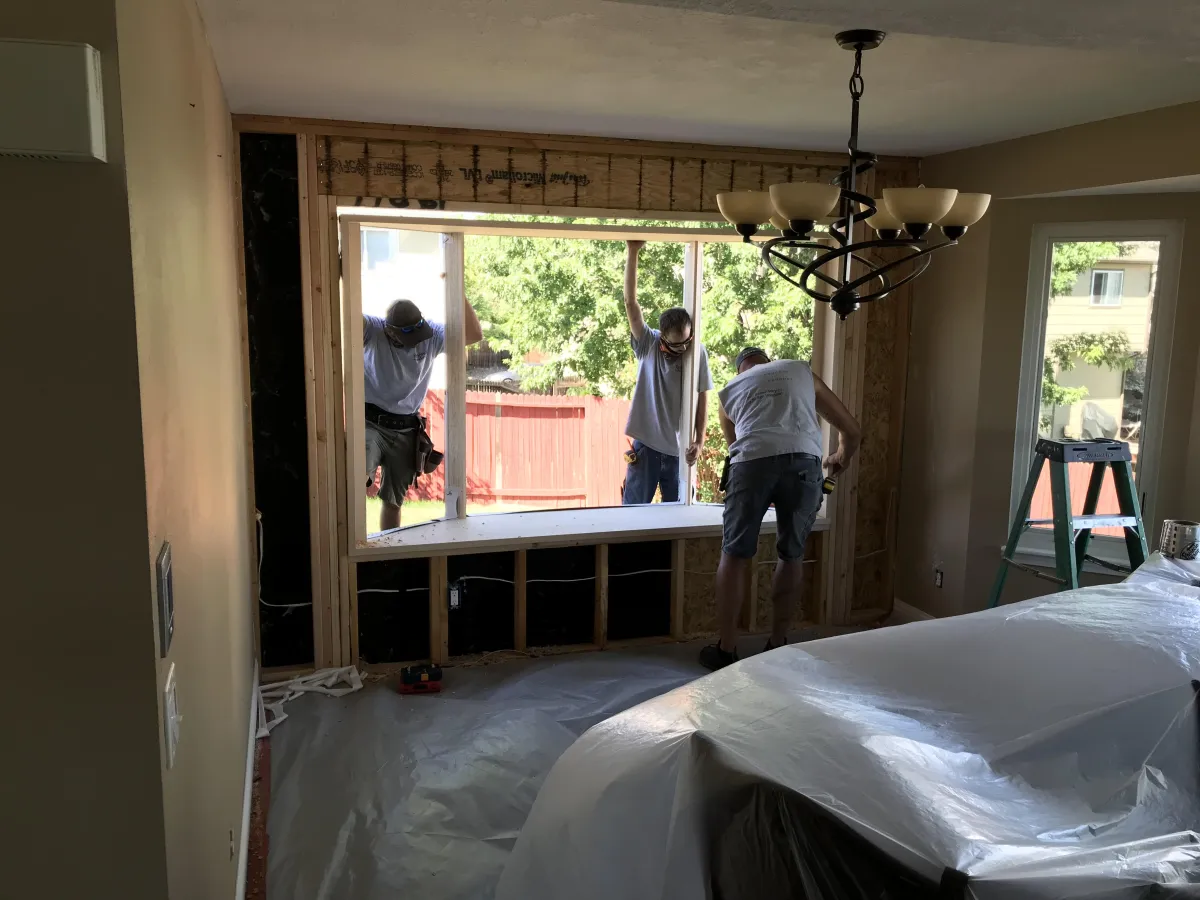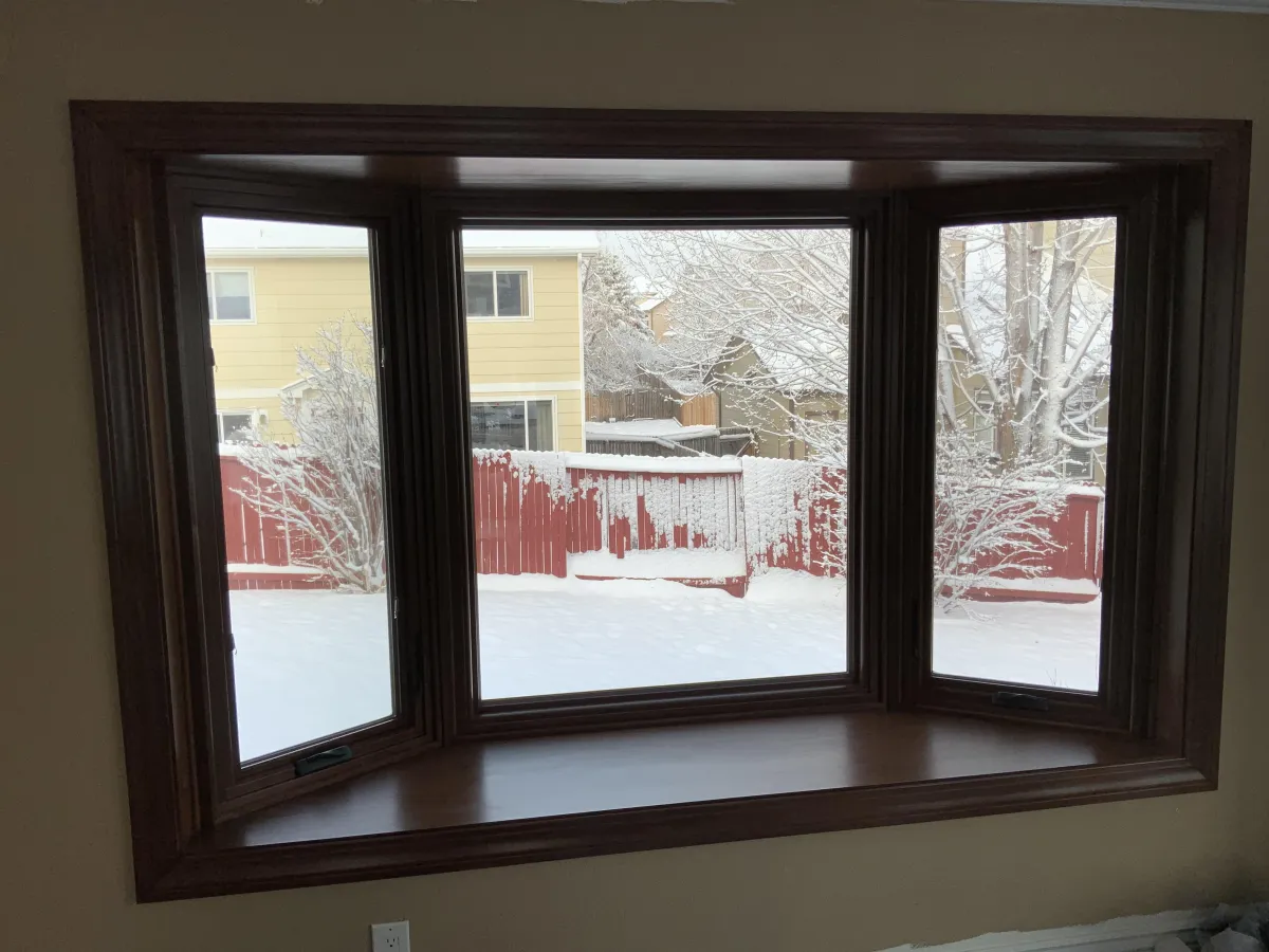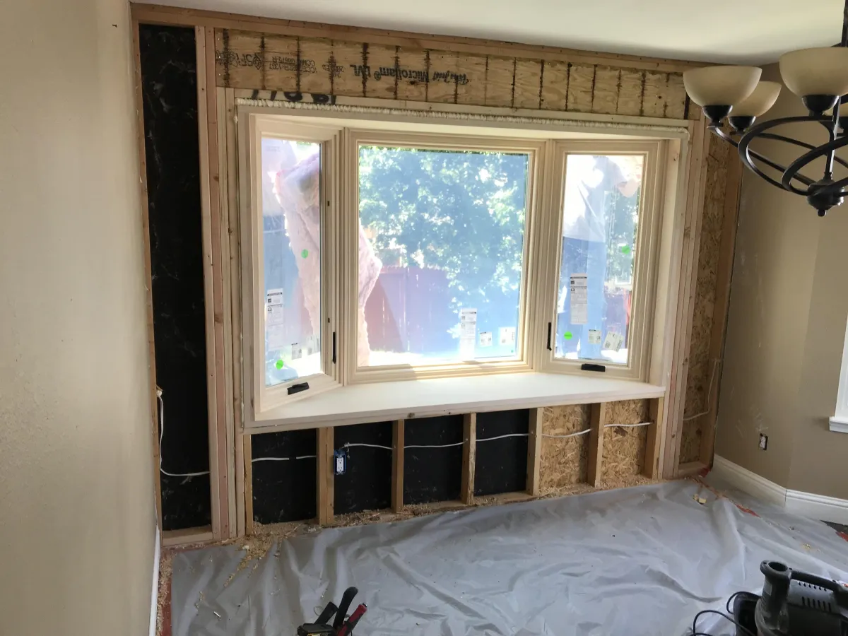 (This homeowner had us cut a hole into his home and install a 3-light 35-degree bay window in his dining room)